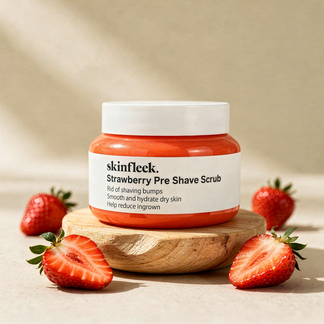 Ексфолиацията с нашия ягодов скраб премахва мъртвите кожни клетки и отпушва порите. Нанасяйте веднъж седмично преди бръснене.